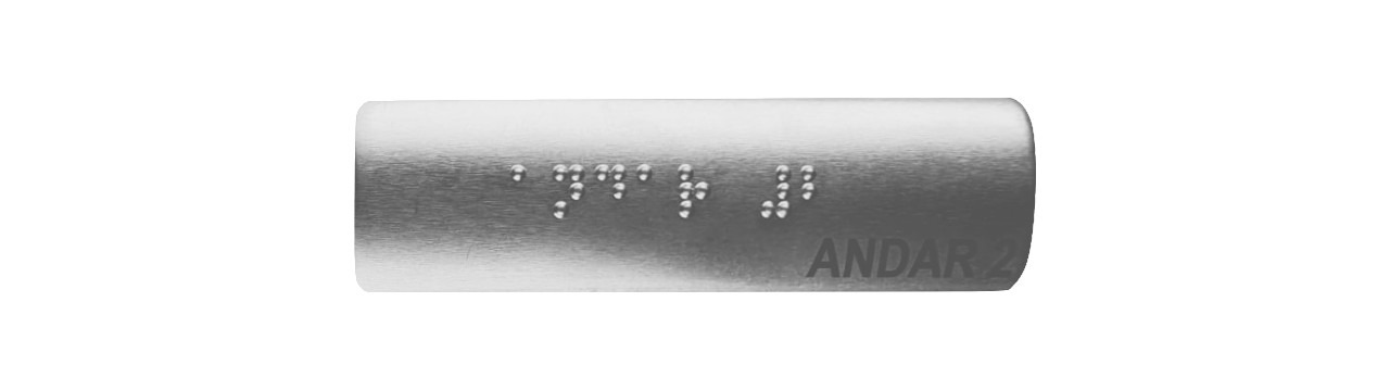 Placa Braile de Corrimão Aluminio 10x3 cm- 2º ANDAR: Identifica andares ou ambientes, garantindo acessibilidade e orientação tátil segura.