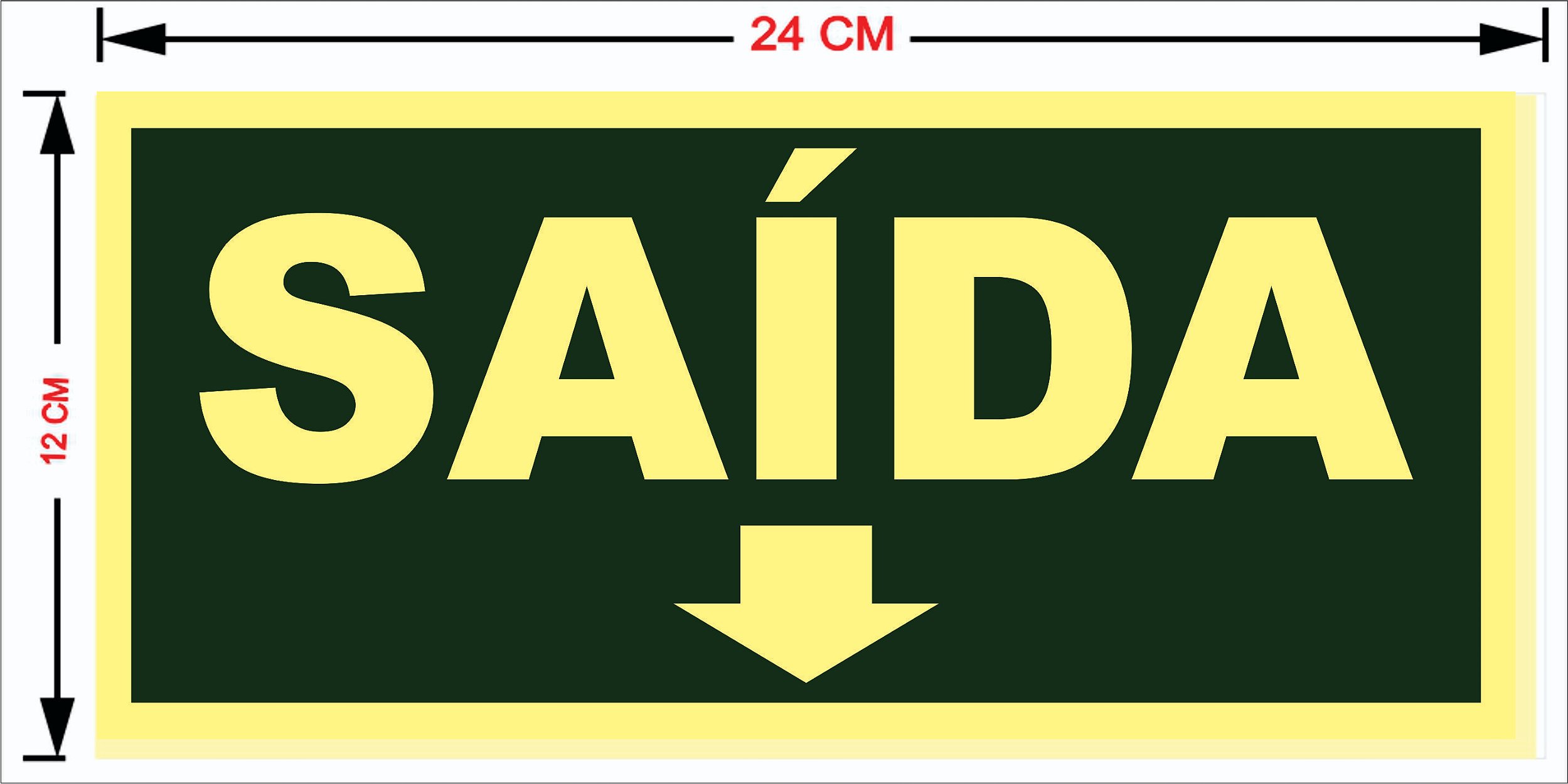 Placa de Sinalização Fotoluminescente “Saída Abaixo” 24x12 cm