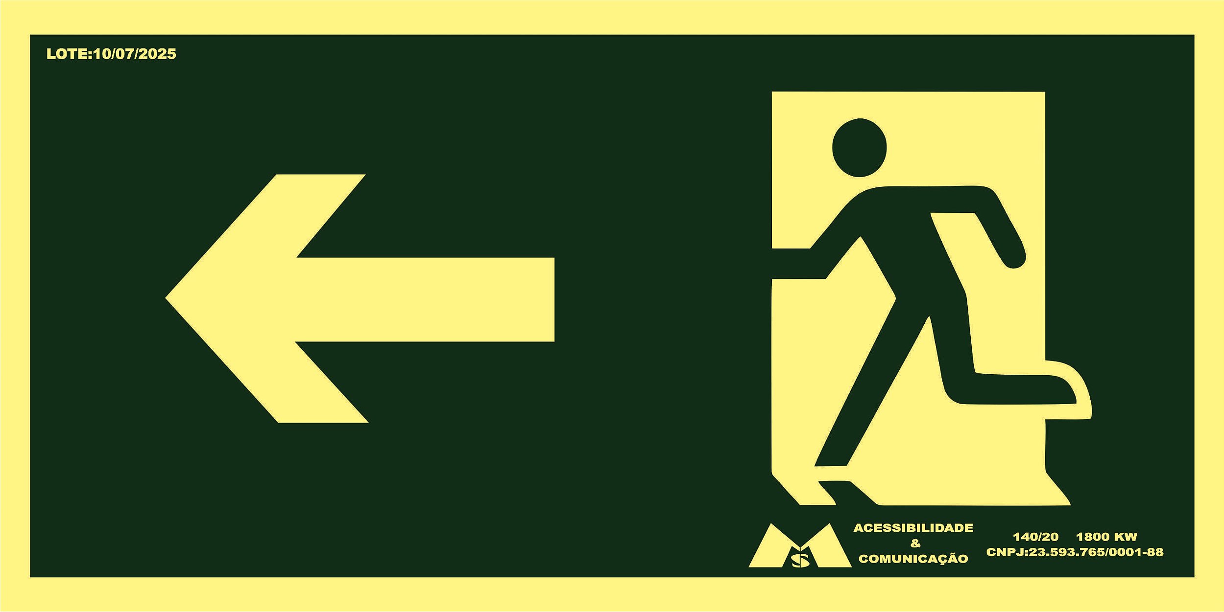 Placa de Sinalização Fotoluminescente “Siga pela Esquerda” 24x12 cm